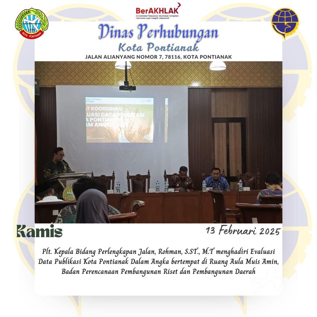 Plt. Kepala Bidang Perlengkapan Jalan, Rohman, S.ST., MT menghadiri Evaluasi Dada Publikasi Kota Pontianak Dalam Angka bertempat di Ruang Aula Muis Amin, Badan Perencanaan Pembangunan Riset dan Pembangunan Daerah