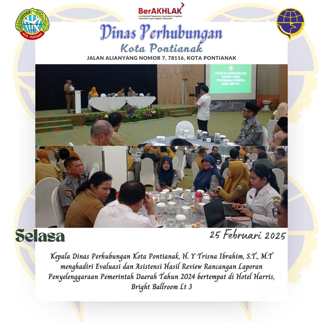 Kepala Dinas Perhubungan Kota Pontianak, H.Y Trisna Ibrahim, ST.,MT menghadiri Evaluasi dan Aistensi Hasil Review Rancangan Laporan Penyelenggaraan Pemerintah Daerah Tahun 2024 bertempat di Hotel Harris, Bright Ballroom Lt 3