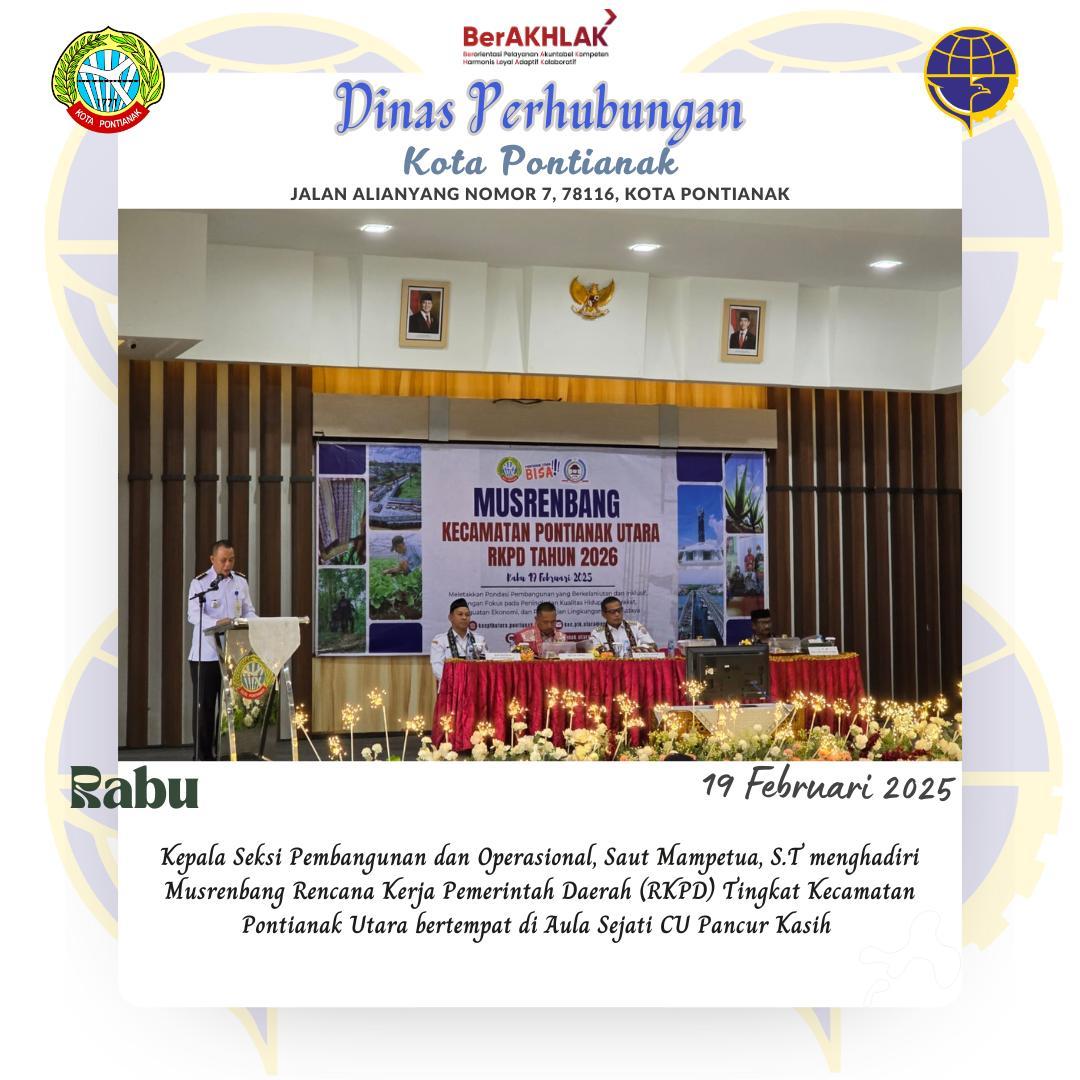 Kepala Seksi Pembangunan dan Operasional, Saut Mampetua, ST menghadiri Musrenbang Rencana Kerja Pemerintah Daerah (RKPD) Tingkat Kecamatan Pontianak Utara bertempat di Aula Sejati CU Pancur Kasih