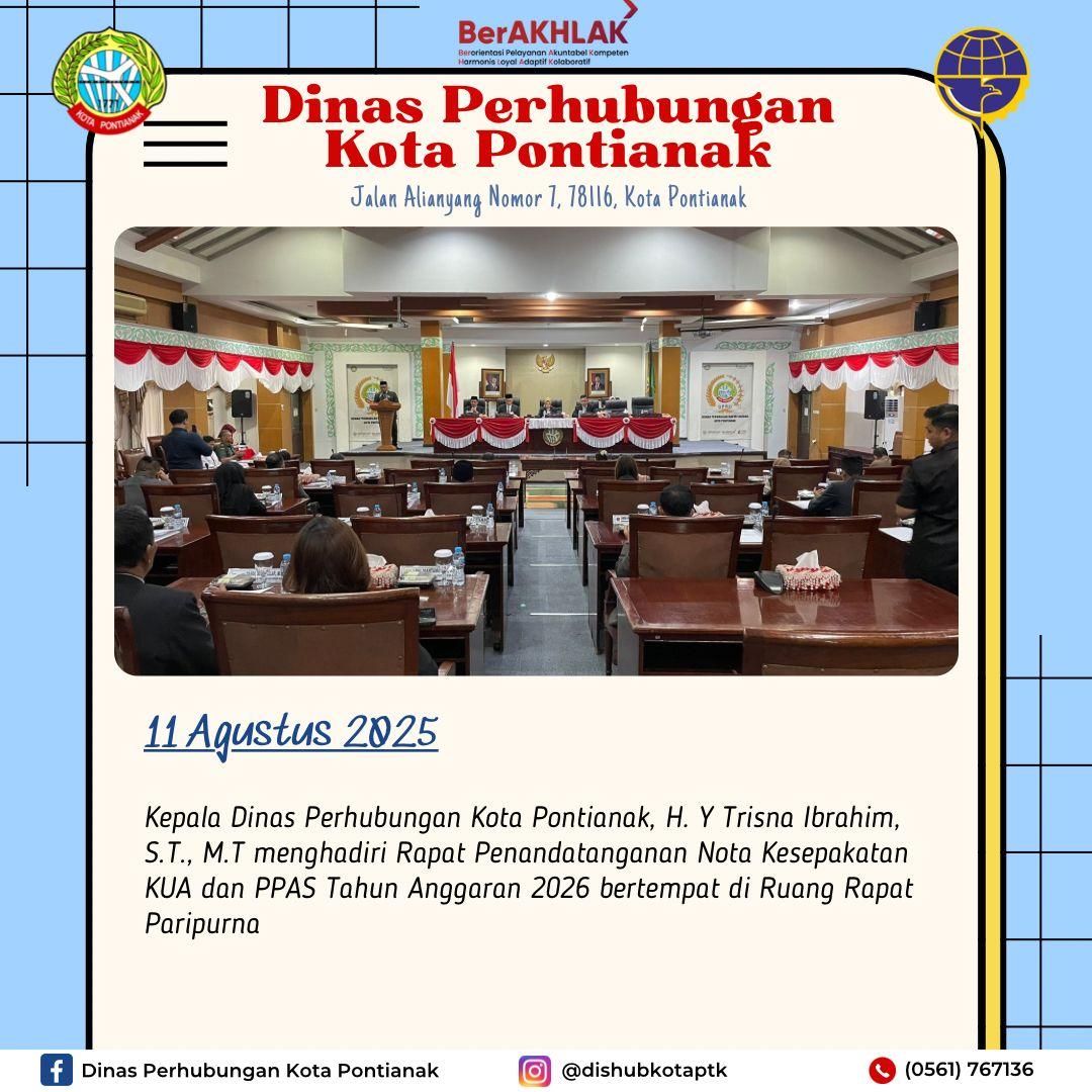 Kepala Dinas PerhubunganKota Pontianak, H.Y Trisna Ibrahim, ST.,MT. menghadiri Rapat Penandatanganan Nota Kesepakatan KUA dan PPAS Tahun Anggaran 2026 berempat di Ruang Rapat Paripurna