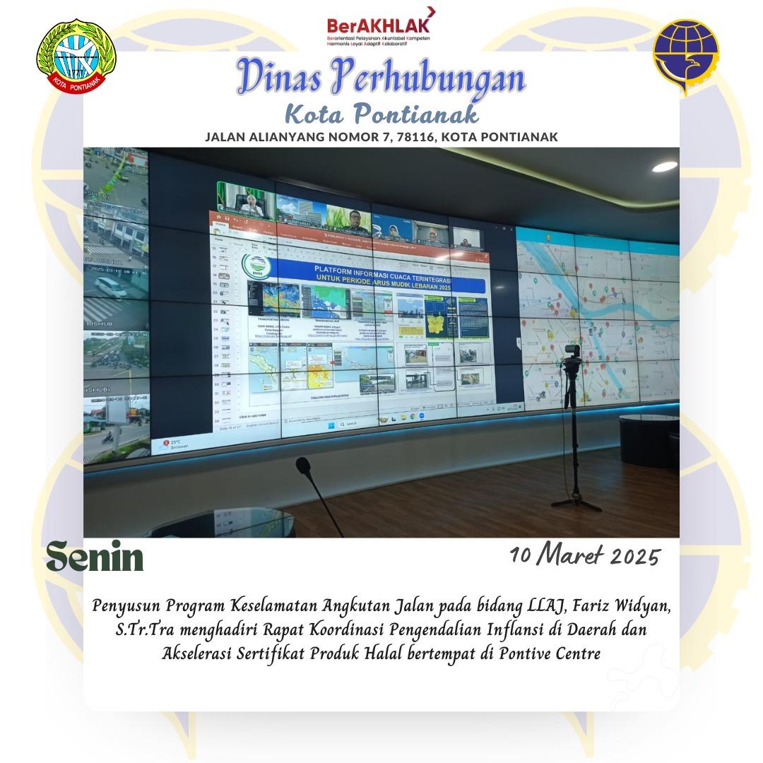 Penyusun Program Keselaman Angkutan Jalan pada bidang LLAJ, Fariz Widyan, S.Tr. Tra menghadiri Rapat Koordinasi Pengendalian Inflasi di Daerah dan Akselerasi Sertifikat Produk Halal bertempat di Pontive Center